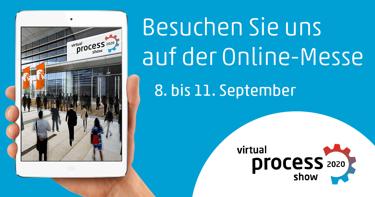 Wir laden Sie herzlich ein, gemeinsam mit uns neue Wege zu gehen! Besuchen Sie uns auf der ersten virtuellen Online-Messe für Prozess- und Produktionstechnik in Chemie, Biotech, Pharma, Lebensmittel und Getränkeindustie.